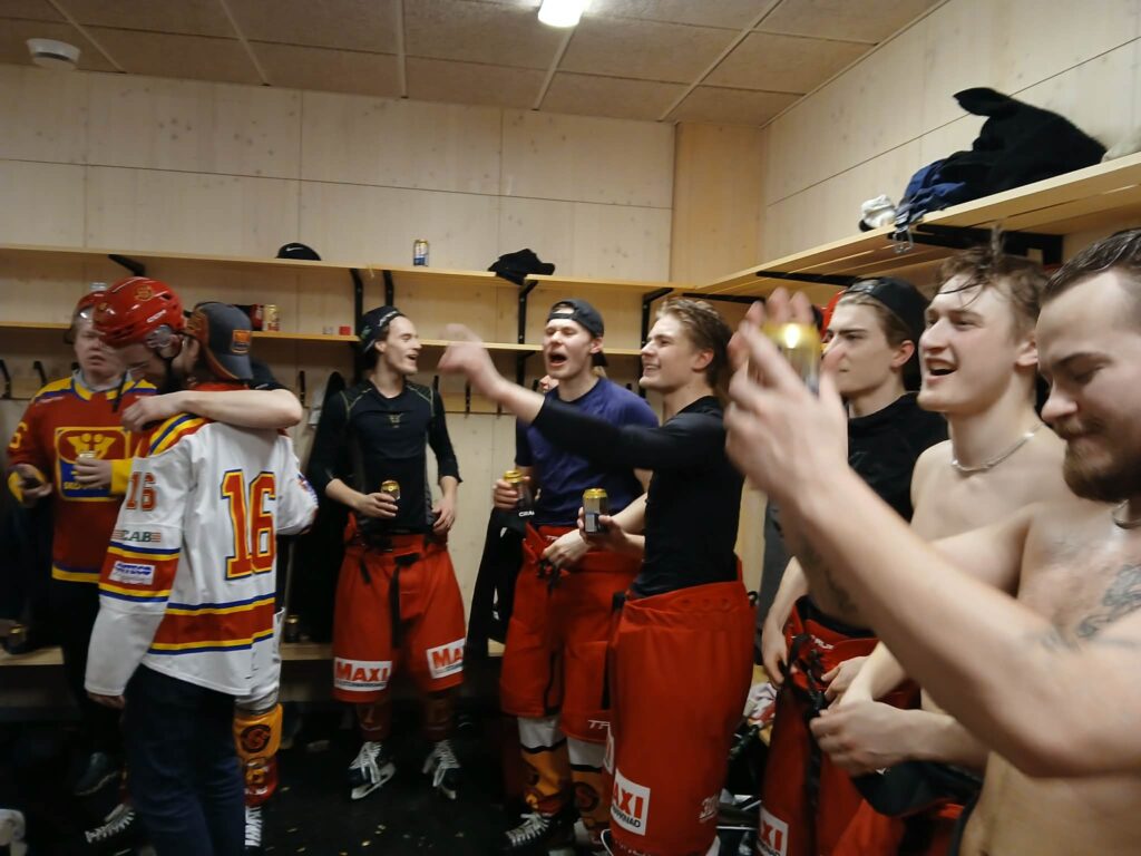 IF Lejonet i Landskrona under fredagskvällen var första matchbollen och trots, troligen säsongens, dittills sämsta insats, så löste laget segern och vann med 2-1 i Landskrona ishall! Segern innebar avancemang till Hockeytvåan och för att citera en av kaptenerna i laget i omklädningsrummet efter matchen ”Vi vinner men gör en jättedålig match, kanske säsongens sämsta, så matchens lirare går till de här hjältarna som åker alla mil för att stötta oss”